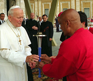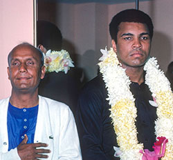 "Incontro i luminari del mondo, sono noti come grandi politici, politici supremi. Io non sono un politico, non conosco a fondo la politica. Vado da loro come uno studente di pace e sento che, nel profondo anche loro desiderano la pace nel mondo. Vado come studente di pace, e loro sono così gentili da ricevermi come tale. Vogliamo la pace; loro hanno una genuina fame di pace nel mondo, come me, quindi parliamo di pace nel mondo. Non parliamo affatto di politica.